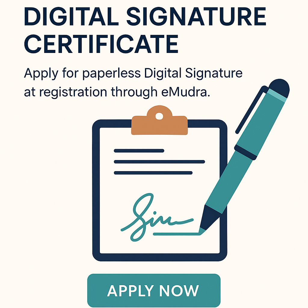 Apply for paperless Digital Signature at registration through eMudra.